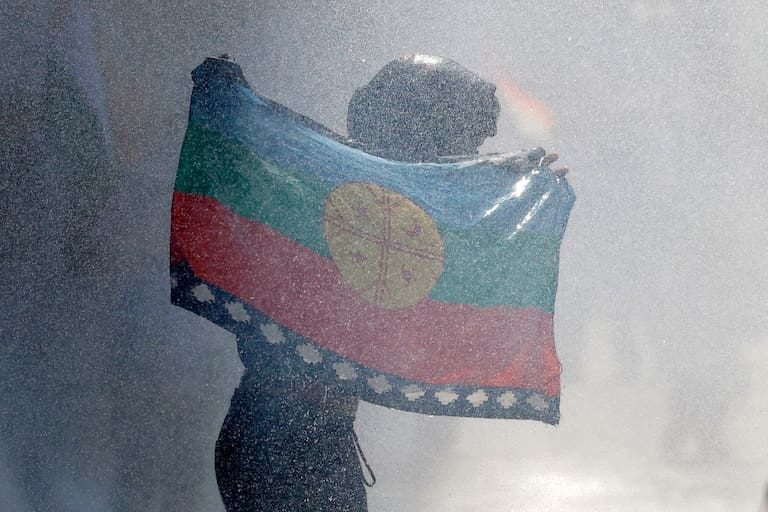 Lors de la marche pour la résistance des Mapuche et de tous les peuples indigènes à Santiago, au Chili, le 13 octobre 2024. (Javier Torres/AFP)
