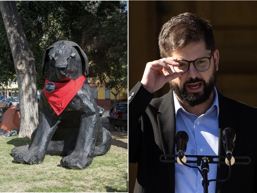 La crise sécuritaire qui secoue l’opinion publique a eu un effet sur la modification de l’agenda politique que Gabriel Boric avait annoncé lors de sa campagne électorale [en décembre 2021; entrée en fonction en mars 2022]. Au Chili, depuis un certain temps, tous les chiens noirs sont, dans une certaine mesure, les mêmes: quiltro – chien de rue, sans race – téméraire et avec un foulard rouge noué autour du cou. Il s’agit d’une image emblématique qui a été déclinée en peintures murales, en affiches, en panneaux de protestation, et qui est même devenue une statue de trois mètres en guise d’hommage.