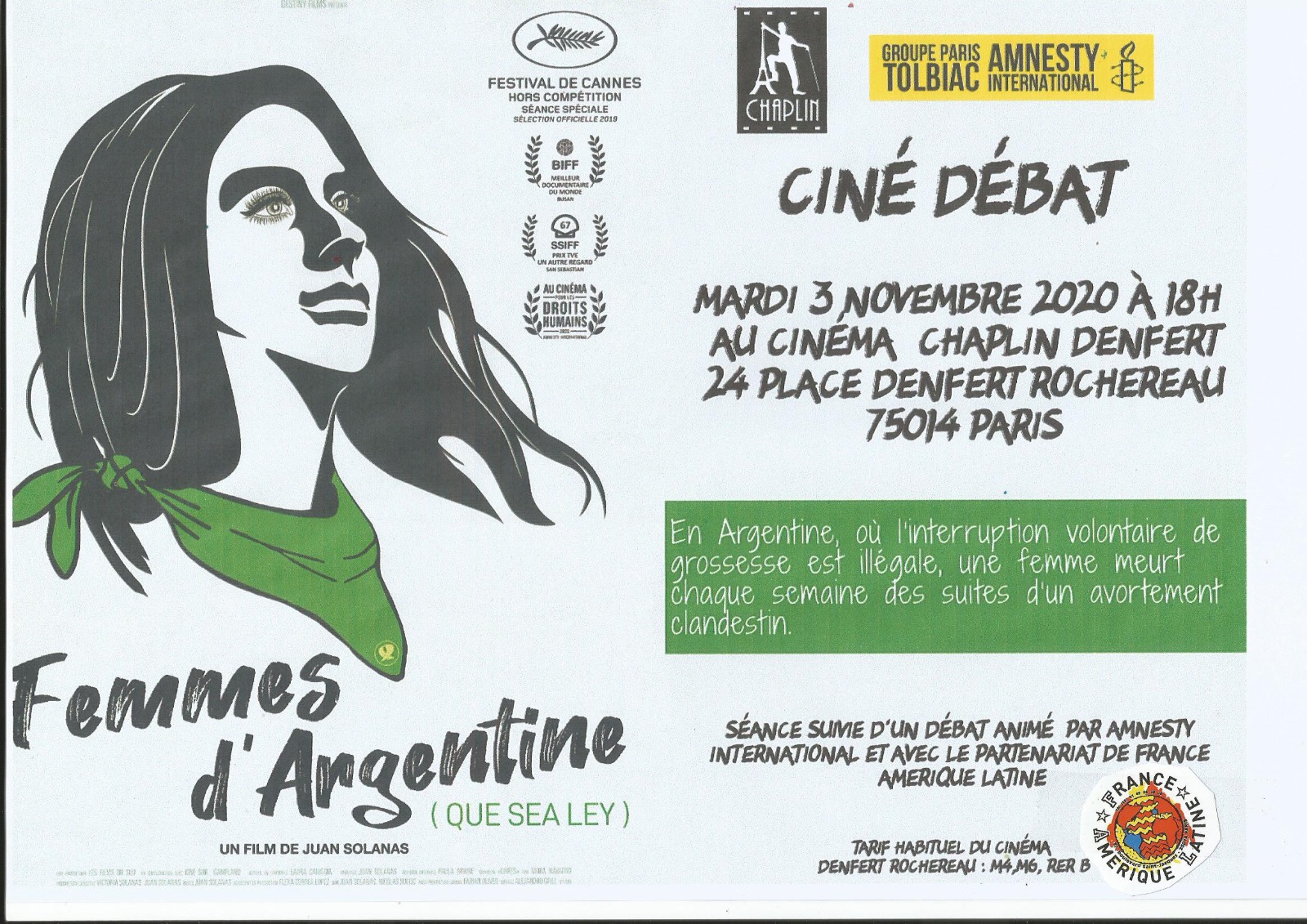 Le mardi 3 novembre 2020 à 18:00 aura lieu la projection de « Femmes d’Argentine » (Que Sea Ley) de Juan Solanas, au cinéma Chaplin Denfert. La séance sera suivie d’un débat animé par Camilla Argüelles d’Assemblée de Citoyens Argentins en France (ACAF). France Amérique Latine co-organise cet événement avec Amnesty International.