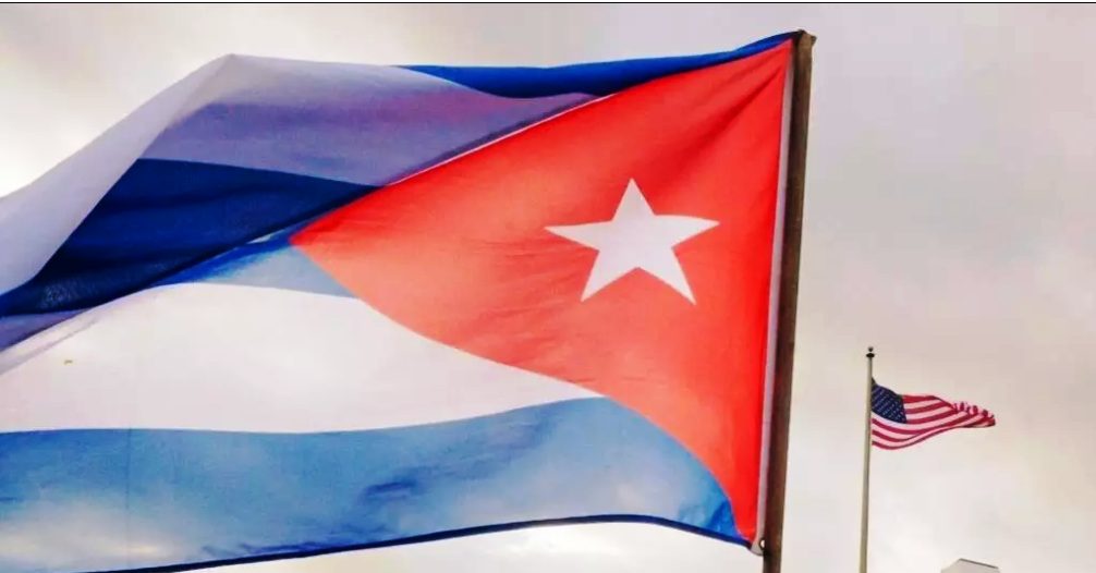 Le drapeau cubain devant le drapeau américain à La Havane, le 16 janvier 2026. © Adalberto Roque / AFP