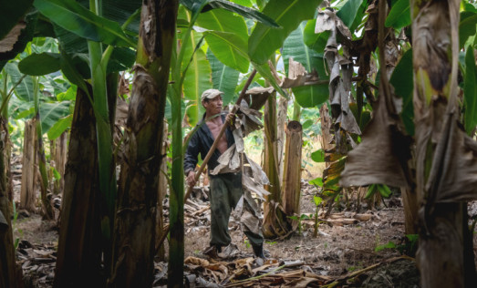« Les personnes qui doutent de tout cela, qu’ils viennent voir et prennent connaissance de notre travail. A l’Assemblée Nationale  l’opposition est là à enquiquiner, ils disent qu’ici nous ne produisons pas une seule banane. Avant de nous juger, qu’ils viennent ». Nous, nous l’avons vu. Les camions sortent chargés. Ils emportent 60 tonnes de bananes par jour, en pleine sécheresse, alors qu’ils n’ont pas un accès facile aux intrants, ni pratiquement aucune aide autre que celle de leurs mains pour travailler. « Et, que dit l’opposition ? Qu’on ne produit pas la moindre banane. Jusque dans le sable et en été nous semons du manioc et du maïs pour notre consommation familiale, des petites bananes, des « parchitas » et du potiron. Nous nous suffisons à nous-mêmes, mais assurons la subsistance des personnes des communautés voisines qui viennent travailler.