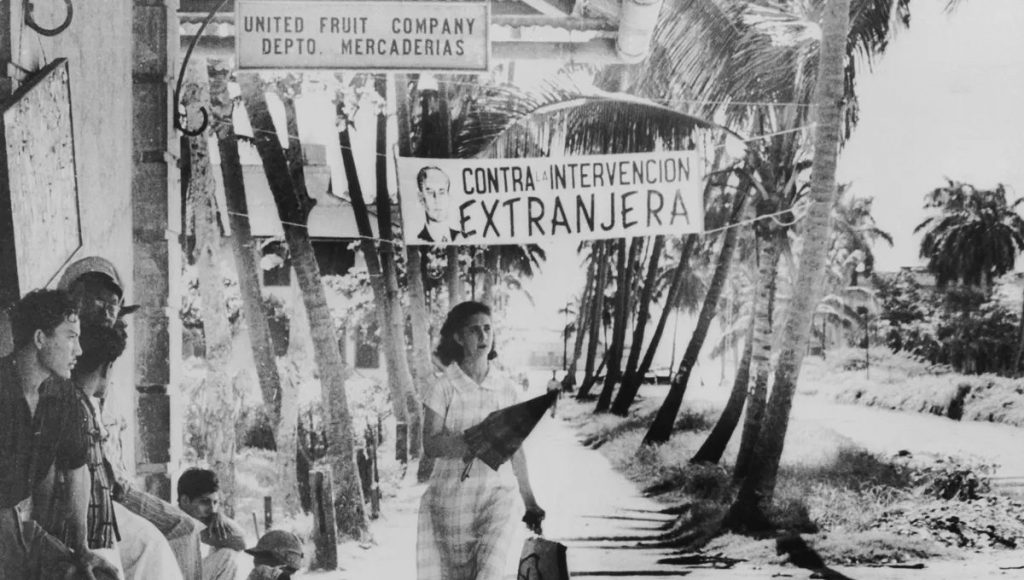 En 1952, le président guatémaltèque Jacobo Árbenz, démocratiquement élu, lance une réforme agraire. Contrairement aux idées reçues, il ne s’agit pas d’un projet communiste mais d’une réforme visant à moderniser l’agriculture. Pourtant, Washington décide d’intervenir. La raison tient en deux mots : United Fruit. Cette compagnie américaine contrôle alors une grande partie des terres du pays, faisant du Guatemala l’une de ces « républiques bananières » d’Amérique centrale. L’historien Olivier Compagnon, spécialiste de l’Amérique latine, souligne la collusion entre pouvoir politique et intérêts économiques : « Qui est le secrétaire d’État ? C’est John Foster Dulles. Qui est le patron de la CIA ? C’est son frère, Allen Dulles. Et ils font partie des deux plus grands actionnaires de la United Fruit. » En juin 1954, la CIA orchestre le renversement d’Árbenz. Lorsque la France et la Grande-Bretagne tentent de protester, Washington exerce un chantage : les Américains menacent de « lâcher » Paris en Indochine et Londres sur le canal de Suez. (…)