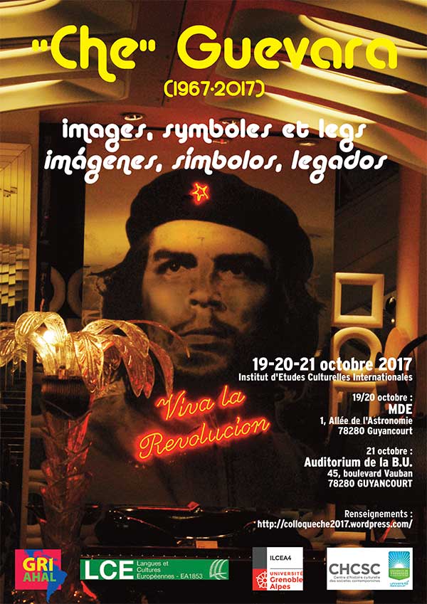À l’occasion du cinquantenaire de la mort d’Ernesto Guevara, le GRIAHAL-CHCSC (Groupe de Recherches Interdisciplinaires sur les Antilles Hispaniques et l’Amérique Latine), en partenariat avec LCE Lyon 2 et ILCEA 4 Grenoble-Alpes, organise un colloque portant sur le processus complexe d’héroïsation, de mythification et d’iconisation du Che. Université de Versailles Saint Quentin Yvelines Institut d’études culturelles et internationales (IECI) 47, boulevard Vauban 78047 Guyancourt