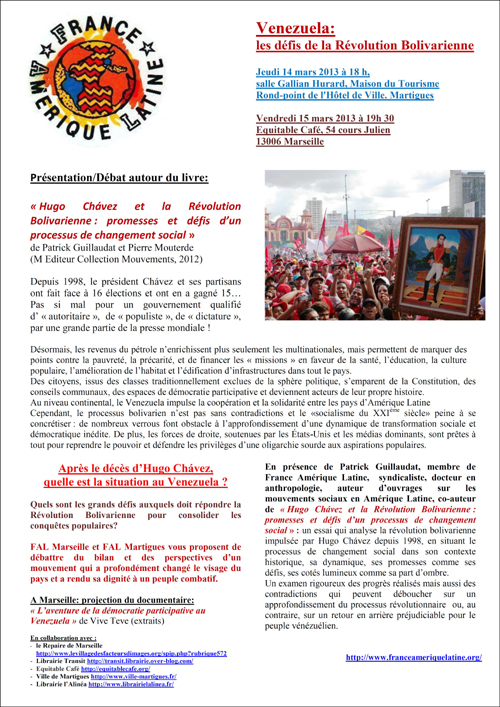 FAL Marseille et FAL Martigues : Venezuela : les défis de la Révolution Bolivarienne