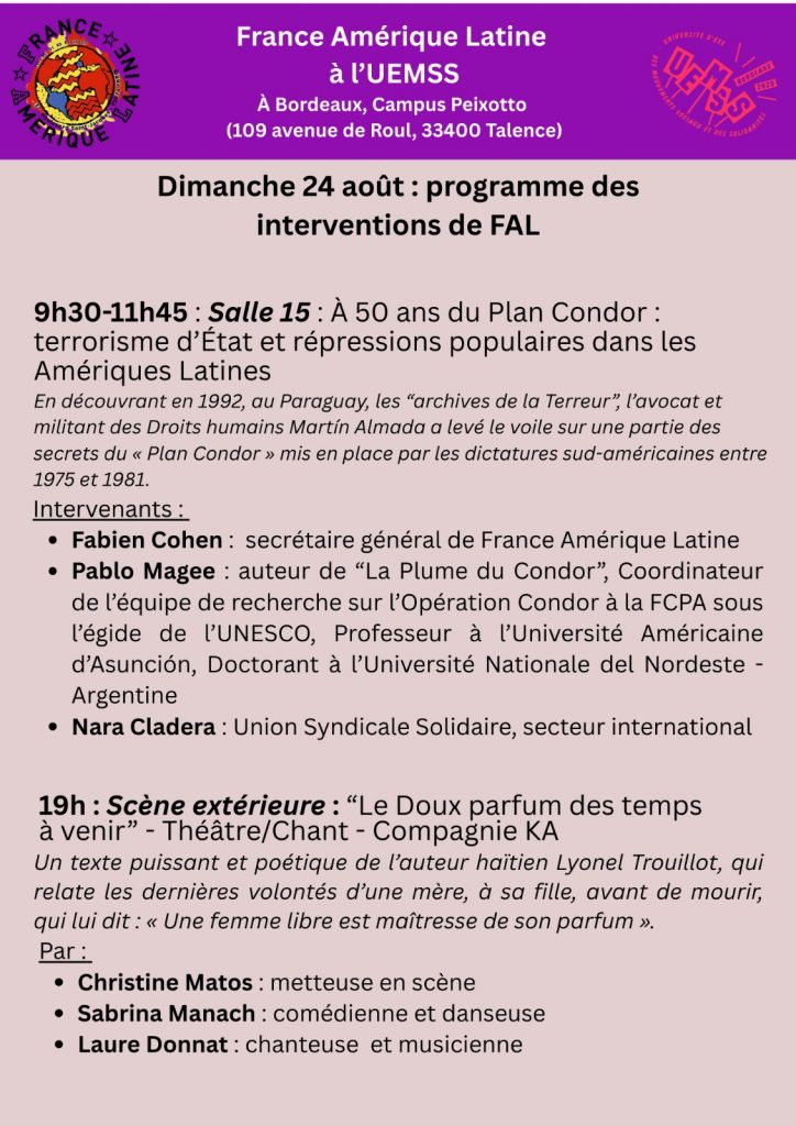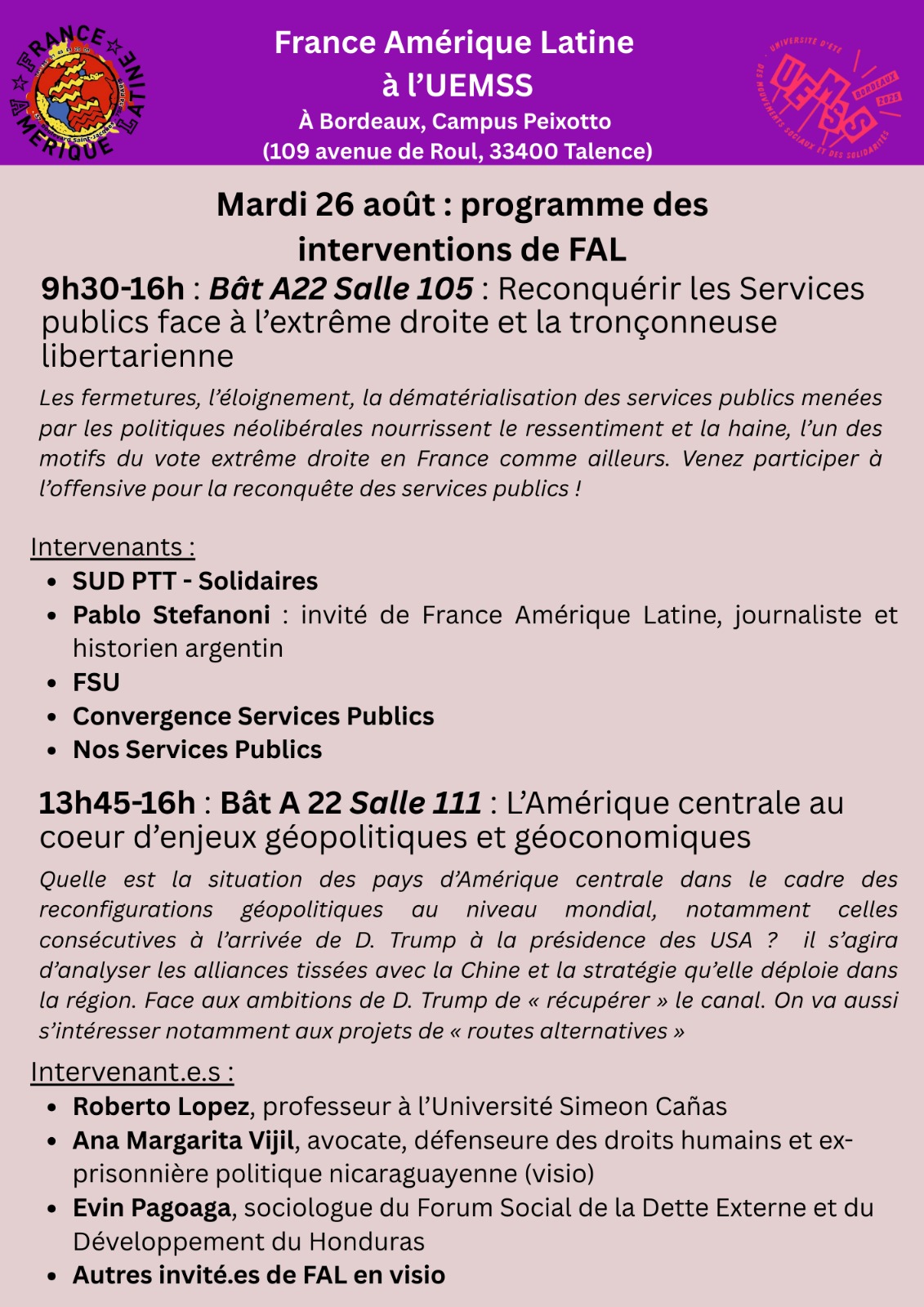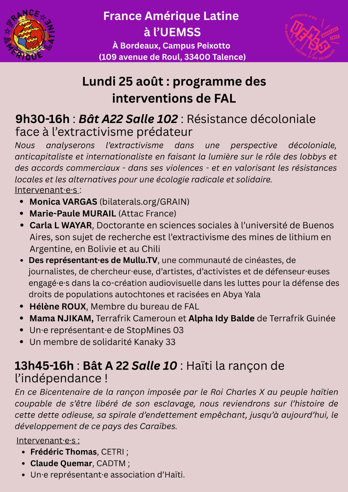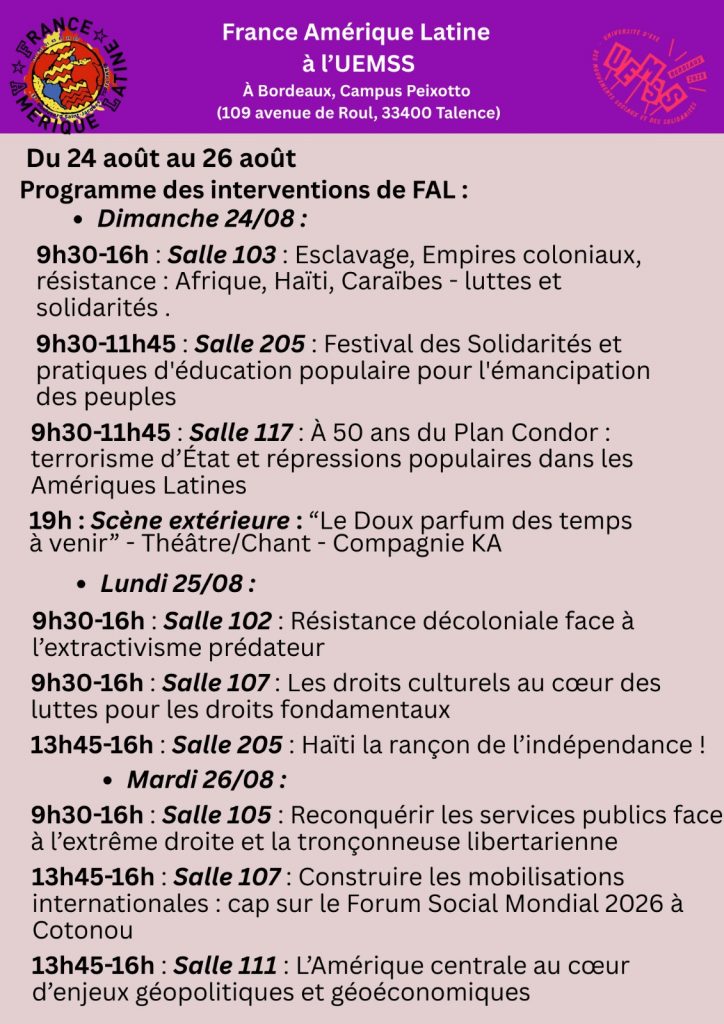 FAL à l’Université d’été des Mouvements sociaux et solidaires (Bordeaux 24 / 26 août 2025)