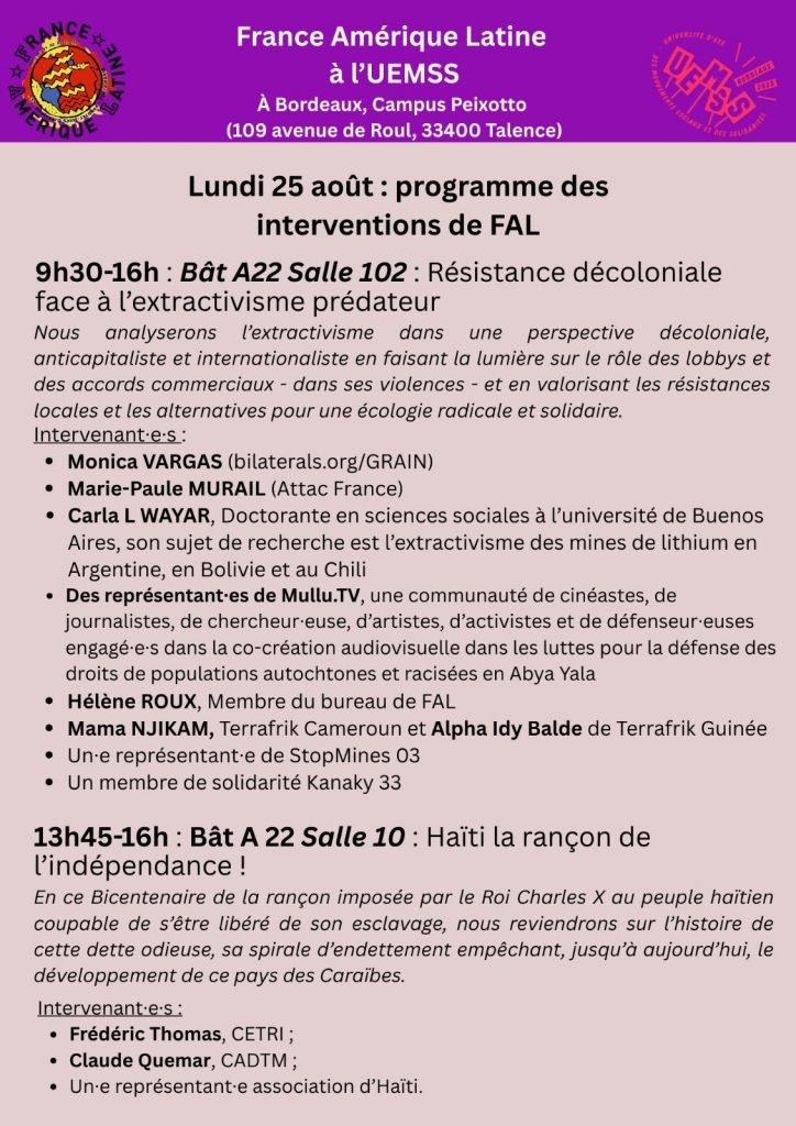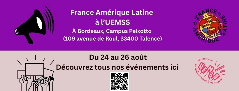 France Amérique Latine sera présente à l’Université d’été des Mouvements sociaux et solidaires 2025 et animera plusieurs ateliers. On vous attend nombreux·ses !