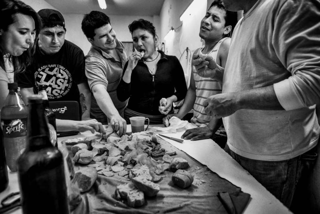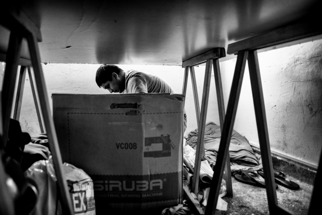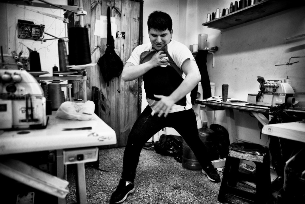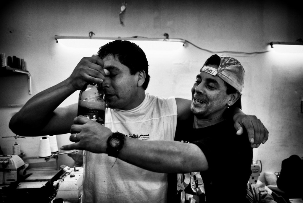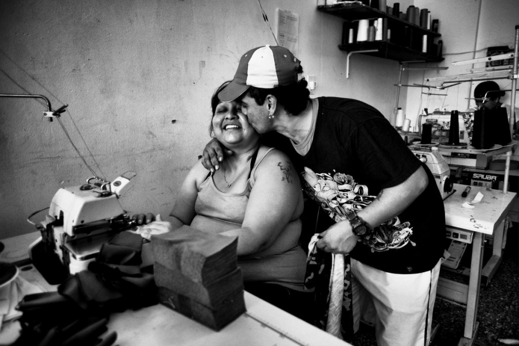Luis est l’un des locataires de ces ateliers. Né au Pérou dans une famille assez aisée qui possédait une fabrique de textile, il a été rejeté par ses proches suite à des problèmes de drogue. Il quitte alors son pays pour vadrouiller en Amérique latine et termine sa course à Buenos Aires lorsqu’il commence à travailler de jour dans un atelier de couture. Aujourd’hui, il gère son propre atelier et fait vivre, en plus de sa famille, une demi-douzaine de personnes telles que Pilar, Eddy ou Isaac. Les journées sont soutenues – de 7 h à 21 h –, mais l’ambiance est détendue. Chacun travaille à son rythme, à condition d’être dans les temps. Les ouvriers sont payés à la pièce, « sinon ils passeraient leur temps à discuter et à boire des bières », se justifie Luis…