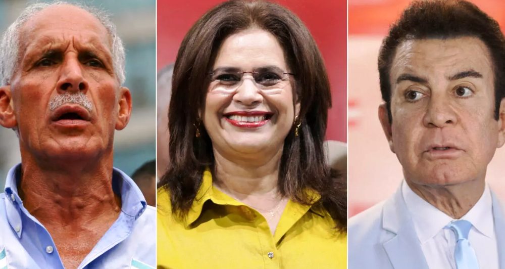 Les trois prétendants à la présidence du Honduras : Nasry Asfura, Rixi Moncada et Salvador Nasralla. © Fredy Rodriguez, Reuters