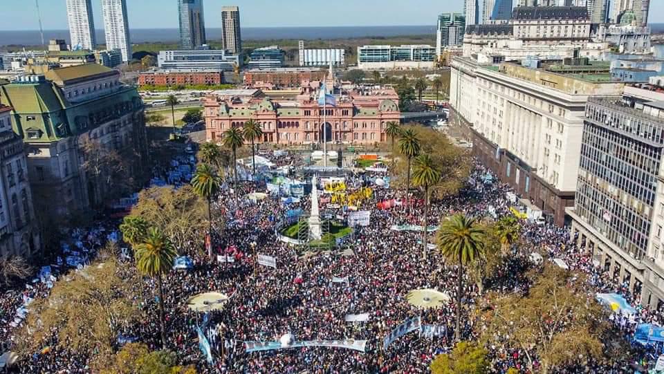 « Avec ses chants et ses tambours, le folklore des militants péronistes était là. Mais ce vendredi, il n’y avait pas que du folklore et des militants. La manifestation place de Mai a réuni des foules comme on n’en voyait plus depuis longtemps, bien au-delà des seuls péronistes. Belén est politologue, de gauche mais sans appartenance politique : « Voir, hier soir à la télé, une personne mettre en joue notre vice-présidente, nous a démontré le danger que représentent certains groupes extrémistes qu’on voit au Brésil, aux États-Unis et en Europe ! » Luz, étudiante, membre d’une organisation de jeunesse péroniste, est venue manifester avec des amis non politisés : « En famille, avec les enfants, c’était une ambiance très agréable, et ce dont nous avions besoin pour pouvoir défendre la démocratie »…