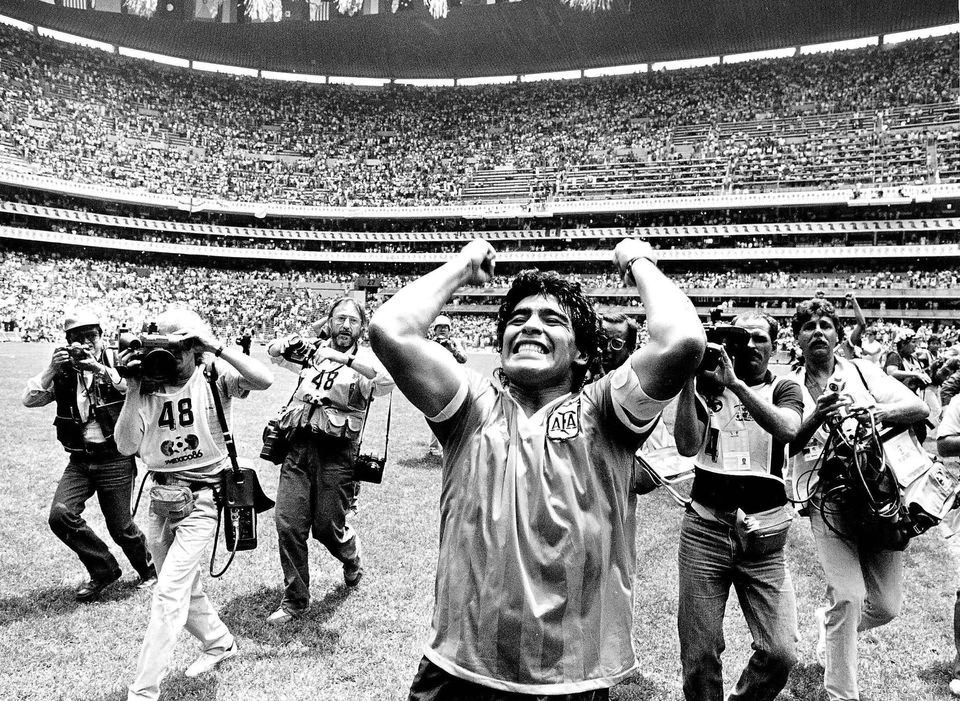 Diego est au sommet de son art lorsqu’il brandit la seule vraie Coupe de monde gagnée par l’Argentine, en 1986, après avoir éliminé l’Angleterre à lui seul en quarts de finale. La main de Dieu et le but du siècle en guise de revanche nationaliste après la guerre de Malouines. «Barrilete cósmico, ¿ de qué planeta viniste para dejar en el camino a tanto Inglés ?» («Cerf-volant cosmique, de quelle planète es-tu venue pour laisser tant d’Anglais derrière toi ?»)
