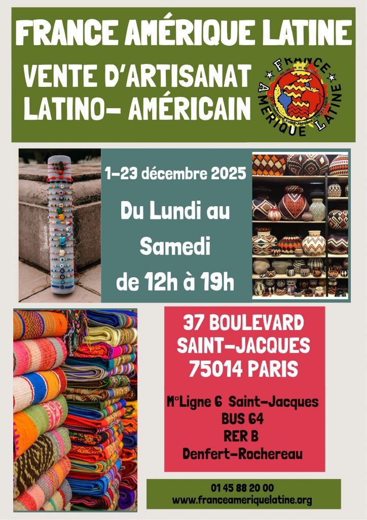 Vente solidaire d’artisanat latino-américain du 1er au 23 décembre 2025